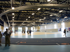 Macalester’s indoor athletic facilities in the Leonard Center include the field house, performance gymnasium, and Riley Pool. The center features state-of-the-art fitness equipment and a beautiful atrium suitable for receptions.