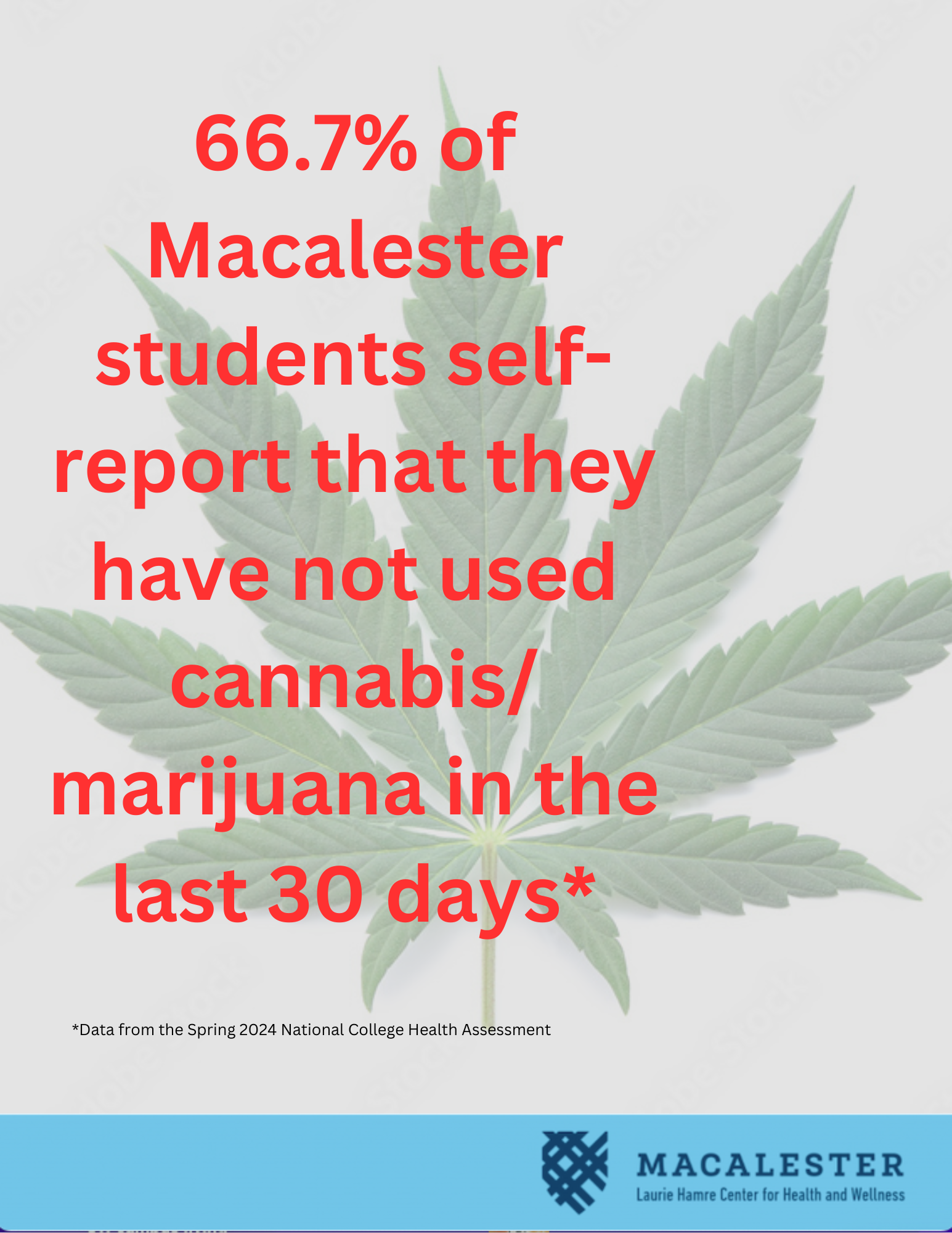 Did you know that 70% of Macalester students report never using tobacco or nicotine delivery products (cigarettes, e-cigarettes, Jull or other vape products, water pipe or hookah, chewing tobacco, cigars, etc) in their lifetime? Source: NCHA Spring 2021, n=514
