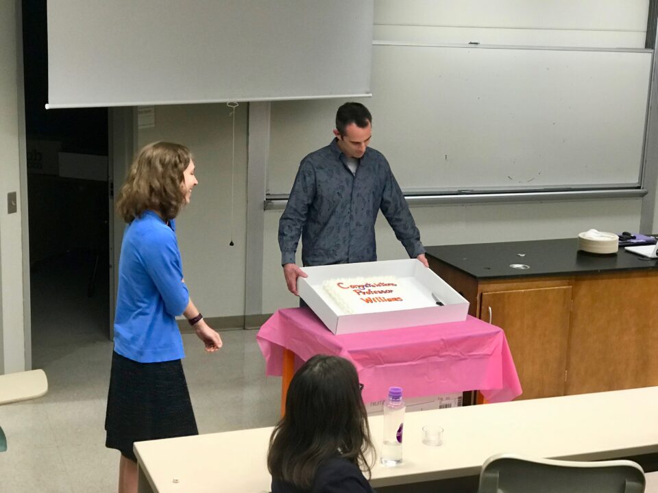 “It was a wonderful day in the department!” Chair John Cannon announced today, 25 April 2019, that Dr. Anna Williams will join the Physics and Astronomy Department on a tenure-track appointment beginning 1 September. She is a great addition to the department and “we look forward to many years of teaching and researching alongside her.” A departmental t-shirt was created to commemorate this occasion. As one of her first projects in the department, Anna is leading Macalester’s effort to organize the “Conference for Undergraduate Women in Physics 2020” in January 2020. Stop by and congratulate Dr. Williams on her appointment!