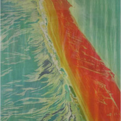 Mary Edna Fraser is an artist who used aerial photographs she took of the eastern shores of North America, particularly the barrier islands, as the basis for the batiks she constructed. She collaborated with Dr. Orrin H. Pilkey, James D. Duke Professor of Geology at Duke University, who provided the scientific descriptions of the underlying processes that produced these fascinating landscapes. Curator: Mark Davis, Biology.