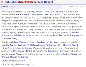 With my first book, the editorial rejections came in fast and hot over one agonizing week. With this second book, it was a similar timeframe with opposite results. From what I understand, this rapid turnaround is not the norm—it’s more common to wait months to hear back, either way, and I credit the quick responses in large part to my superstar agent. Within a few days of sending the book out, a lot of editors were already expressing interest, and the following week I met with every one of them over Zoom, stacking meetings between classes. I barely remember that week, to be honest; it was a whirlwind and I was a basket case of anxiety and hope. I am thankful to past-Emma for taking incredibly detailed notes. After that week of meetings, the auction was on the following Monday morning, and my agent called me after my first class (your class, Chloë!) to tell me the winning bid, which came from HarperCollins. I put my head down on my desk, cried, then called my family.