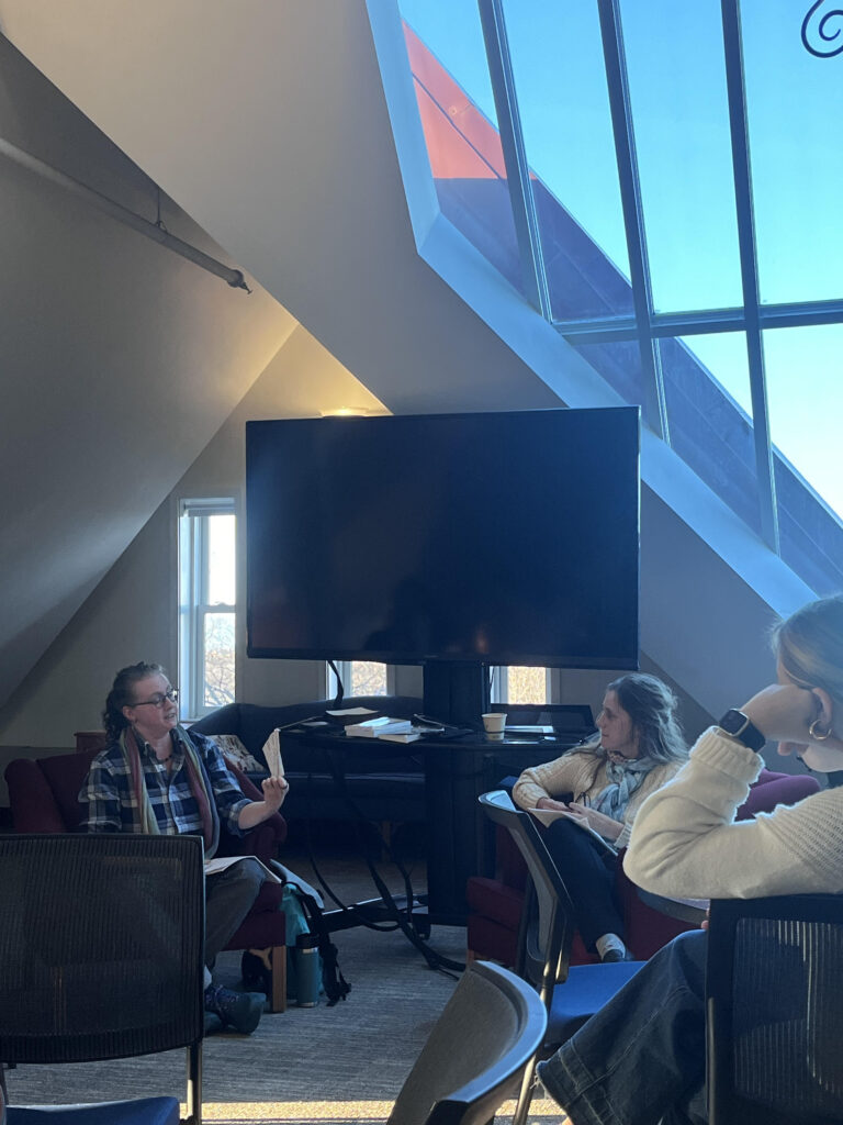 Neither of these two professor’s works are finalized yet, so both the excerpts published here may change or cease to exist altogether in the final print version. Both discussed the joys that accompany the writing and revising process, and their very different styles — Gold keeps most of their work digital, while Kaston Tange prefers to work in the physical realm, printing her pages and laying them out to reorder them.