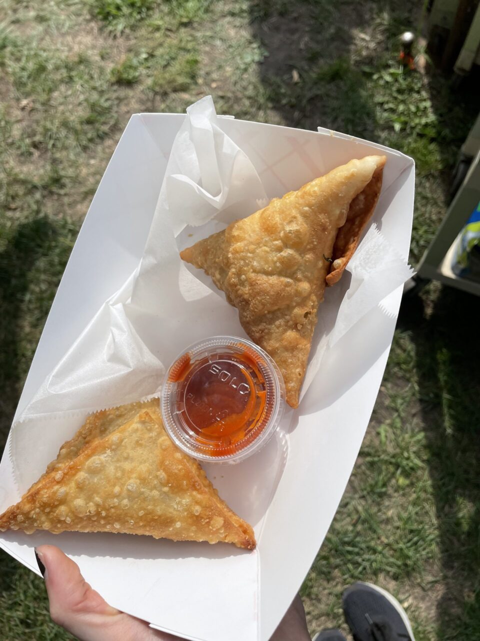 Yummy sambusas with sauce.