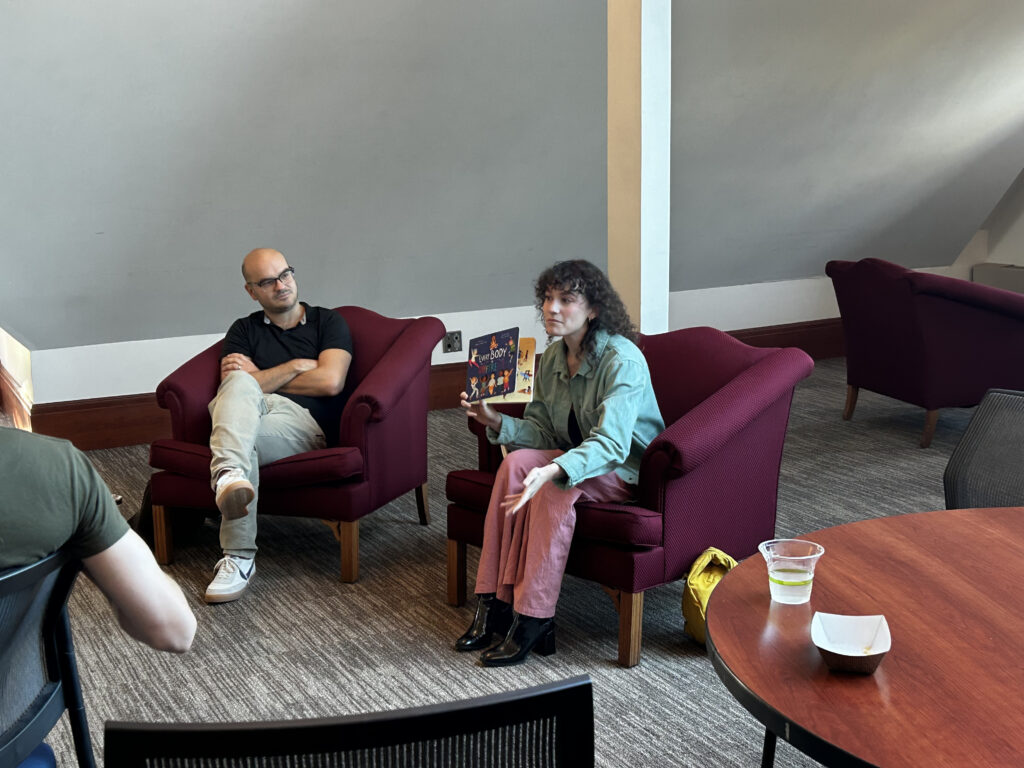 This fall, the English Department welcomed Professor Matt Burgess into his new role as chair. Returning from his semester-long sabbatical, Matt dove back into the classroom, teaching ENGL 150: Intro to Creative Writing, while carving out time for his newly acquired administrative duties. We stopped by his office hours to chat about his creative work and sabbatical-side-tasks, improv included, as well as his first few weeks as chair. Read our interview with Matt here!