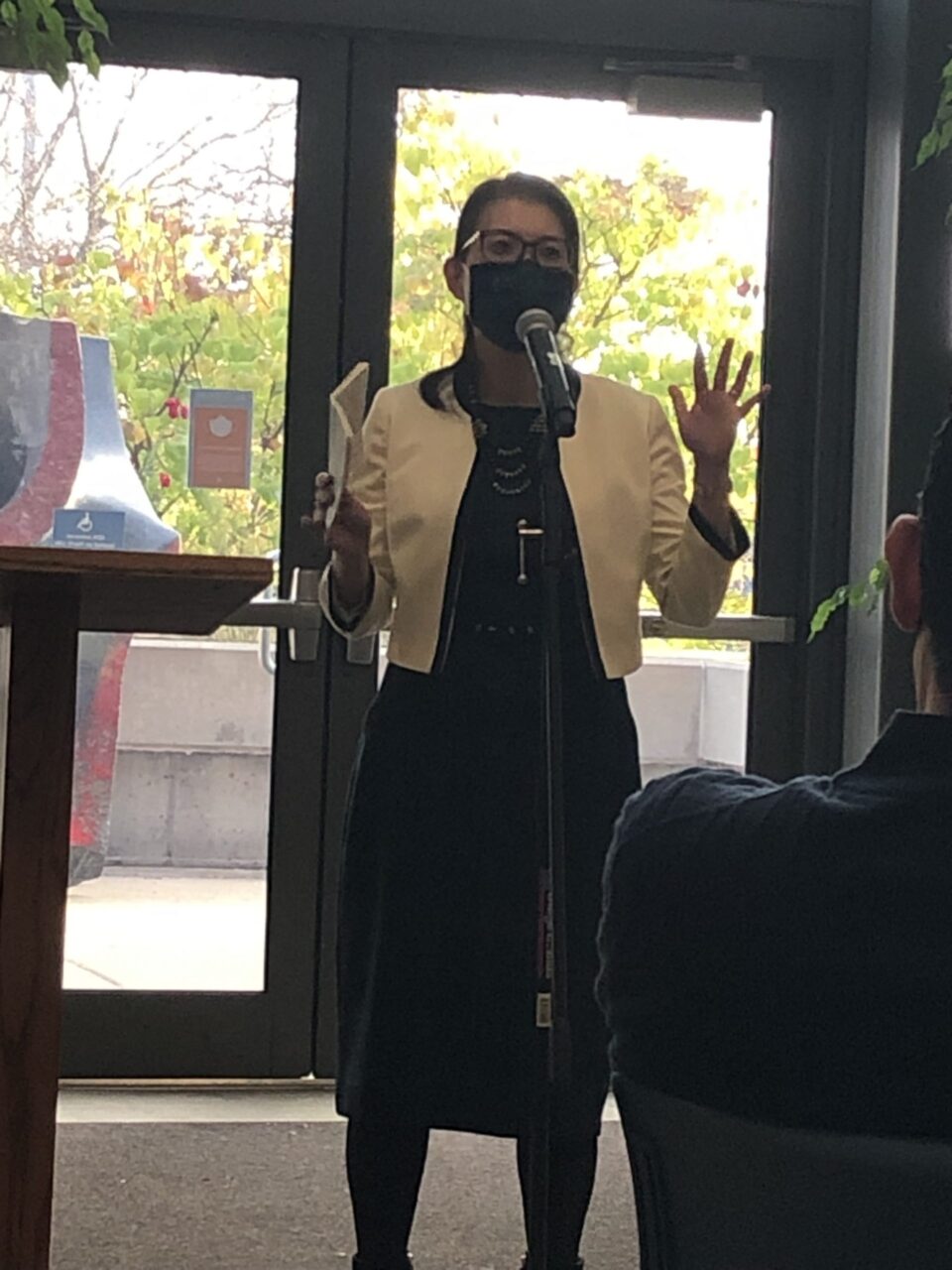 One such student, Anna Chu ‘22, called the event lovely, noting that “Professor Geng knows how to read deeply into the work she’s analyzing, yet also makes it fun and entertaining.” This sense of fun was a common feeling, especially after the Q&A, when students, faculty, and staff had time to mingle and reconnect with each other after more than a year apart. Ultimately, the book celebration marked a successful and energizing evening for the Macalester English community.