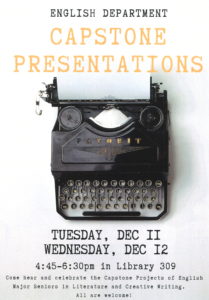 It is a truth universally acknowledged that a senior English major completing their capstone must deliver constant heaving sighs. The capstone is designed to be a culmination of each student’s academic career, and generally takes the form of a semester-long independent project with consistent workshopping and advice from classmates and a professor. This semester, the department was lucky to have Professor Marlon James and Professor Wang Ping offering creative writing capstone opportunities, and Professor James Dawes instructing the literature capstone class. Read on to learn more about capstones…