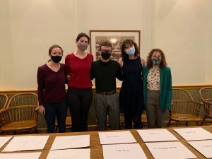 The five EHS officers—Dalton Greene ‘22, Shelby Kruger ‘22, Kira Schukar ‘22, Gabby Helf ‘23, and Ella Rehman ‘23—welcomed newly inducted members to the English Honor Society at the Fall Induction Dinner on November 11th. Read more about the Induction Dinner here…
