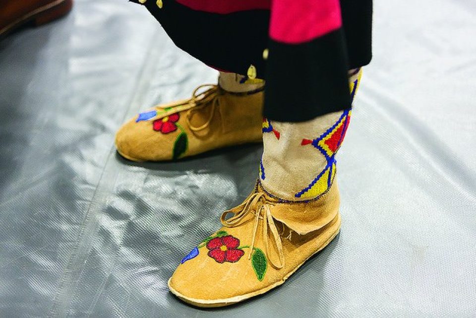 Commencement moccasins worn by Abaki Beck ’15