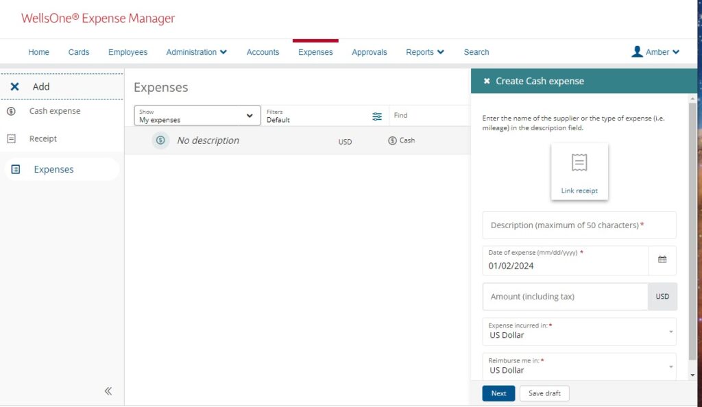 Every expense requires a Description, which is referred to as the Business Purpose in Wells Fargo. (See previous image above).