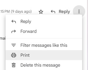 • PLEASE NOTE: You CANNOT simply forward a plain email you received from a merchant. Receipts need to be emailed as attached files. You can turn a plain email into a PDF by clicking the 3 dots at the top right of the email and clicking Print.