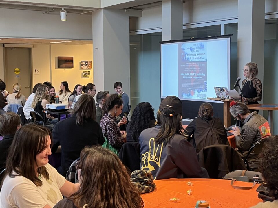 The 11th Annual Critical Theory Symposium took place on April 19 and lasted almost three hours, including Q&A and buffet! This year’s topic was “Authority and Subjectivity: From Absolutism to the Present Carceral State,” with professors Christina Hughes (Sociology) and Mark Mazullo (Music) as speakers. Our gratitude to all co-sponsoring departments and the KAIGC as well as the approximately 120 students, faculty, and senior administration who gathered to honor this Macalester tradition and engage in inspiring dialogue.