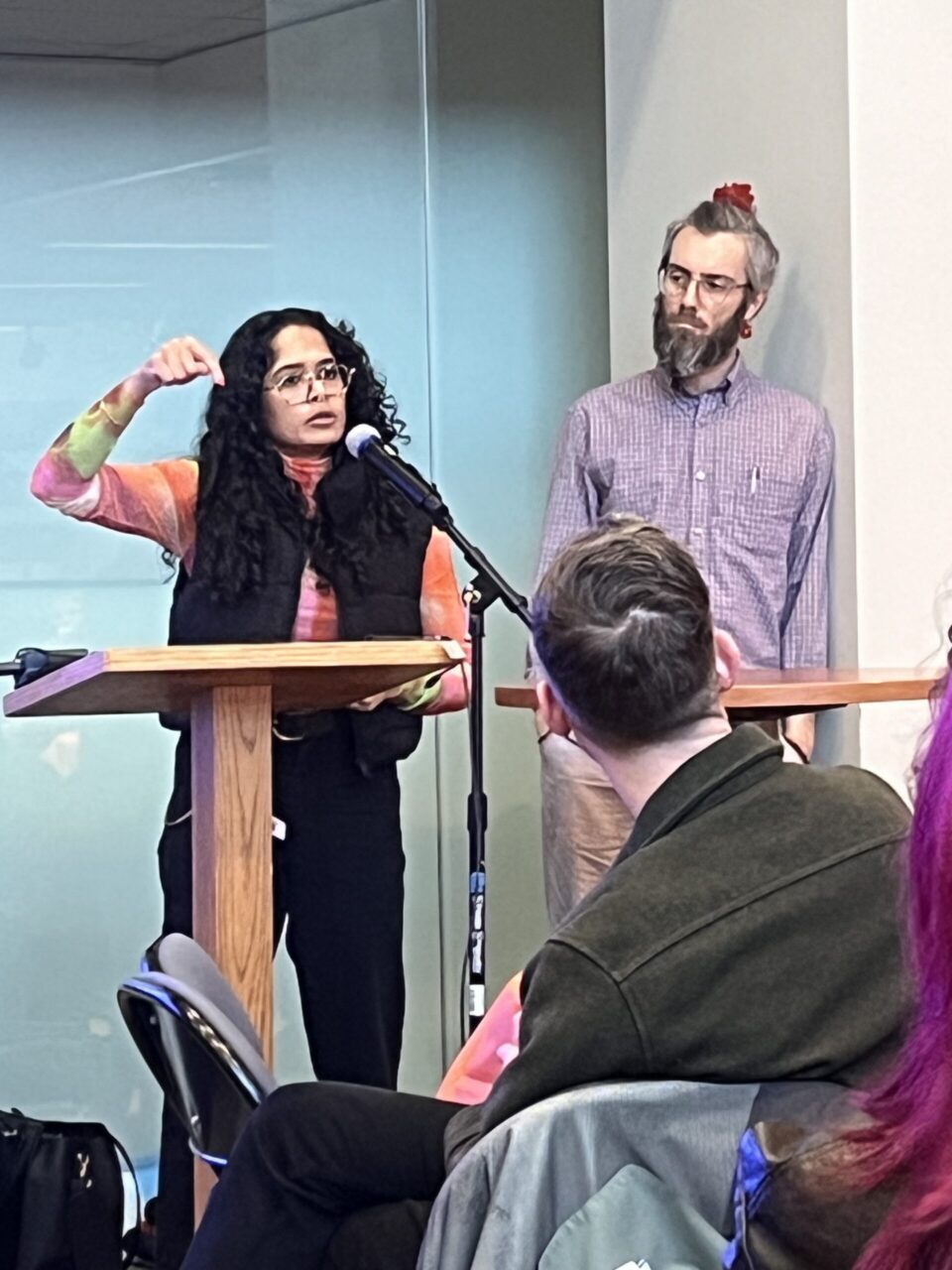 More than 130 students, faculty, and staff attended Macalester’s 12th annual Critical Theory Concentration Symposium on April 11, 2025. This year’s topic was “The Lived Self and Memory,” and the speakers were professors Erika Busse-Cárdenas (Sociology) and Rotem Herrmann (Philosophy). Their respective talks, “Waiting Lives in the U.S. Mexico Border: Deported Mothers and Their Struggles to Return,” and “Between the World and Body: An Embodied Account of Personal Memory,” instigated a lively discussion with the community members.