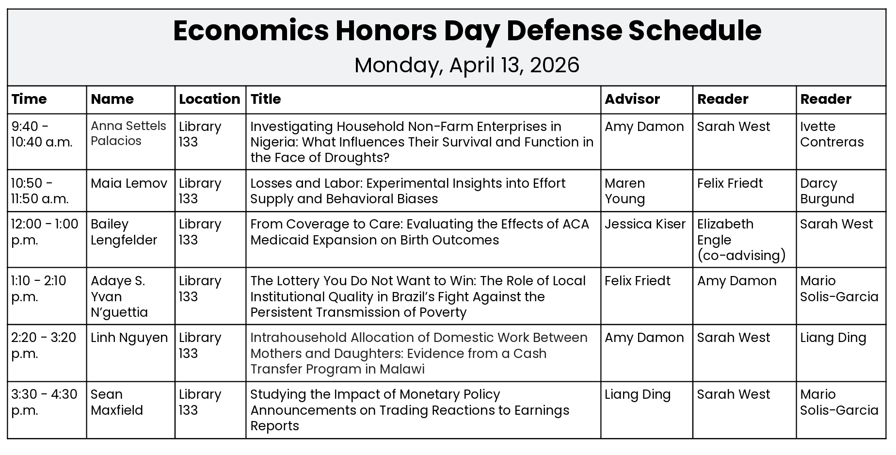 Gavin Engelstad ’25 (Denver, CO), “Cross-Sectional Household Heterogeneity in the Business Cycle”
