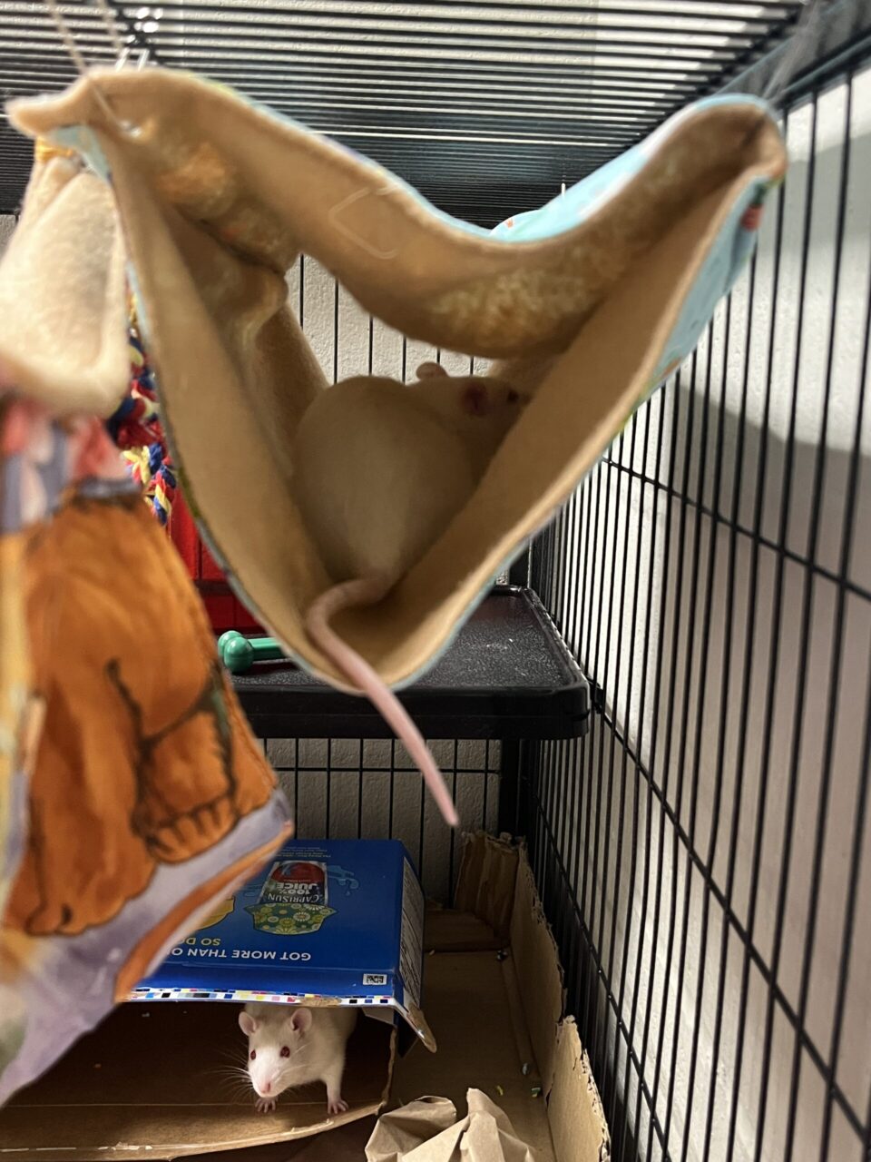 “The rats love them!” Gabby beams. “The hammocks are so simple to sew, so as the rats chew through them, new ones can be made,” they add. Are you interested in sewing a rat hammock? If so, here are Gabby’s step by step instructions.