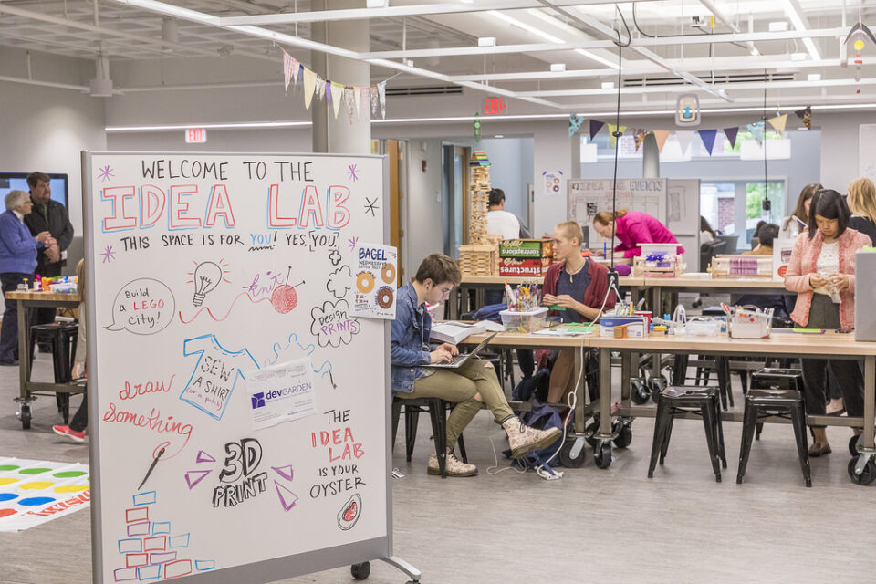 The Idea Lab (located on the 2nd floor of the library) is a space for everyone on campus including makers, dreamers, entrepreneurs, and the hopeful who are willing to take risks, adapt ideas, expand their vision, and build skills that will last a lifetime. It is a community-oriented workspace designed to encourage collaboration by giving everyone the tools and support they need to realize their ideas.