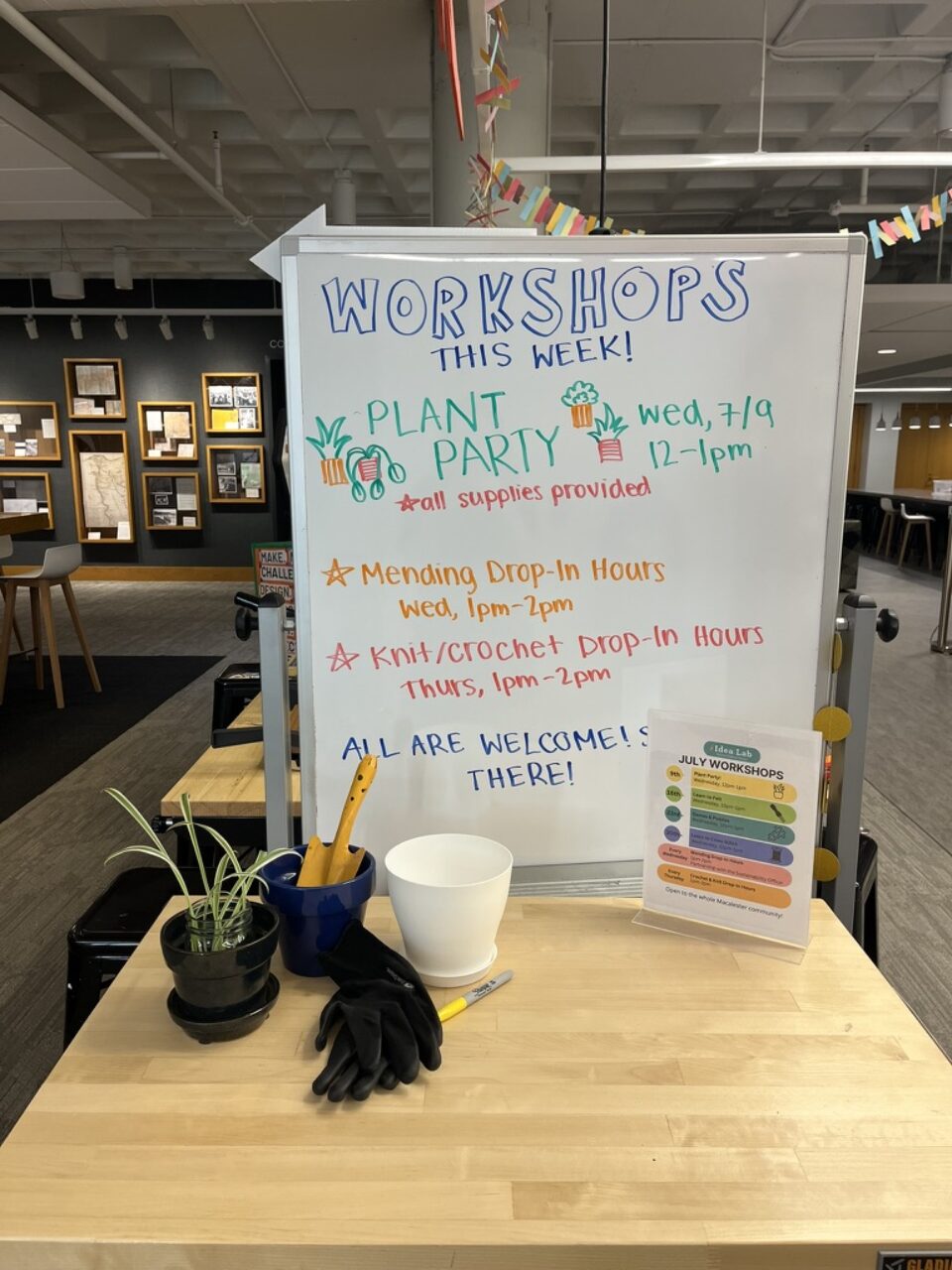 The Idea Lab staff is available to answer questions or assist you with scheduling your class, program or event. Reach out to Briana Riley, Administrative Coordinator.