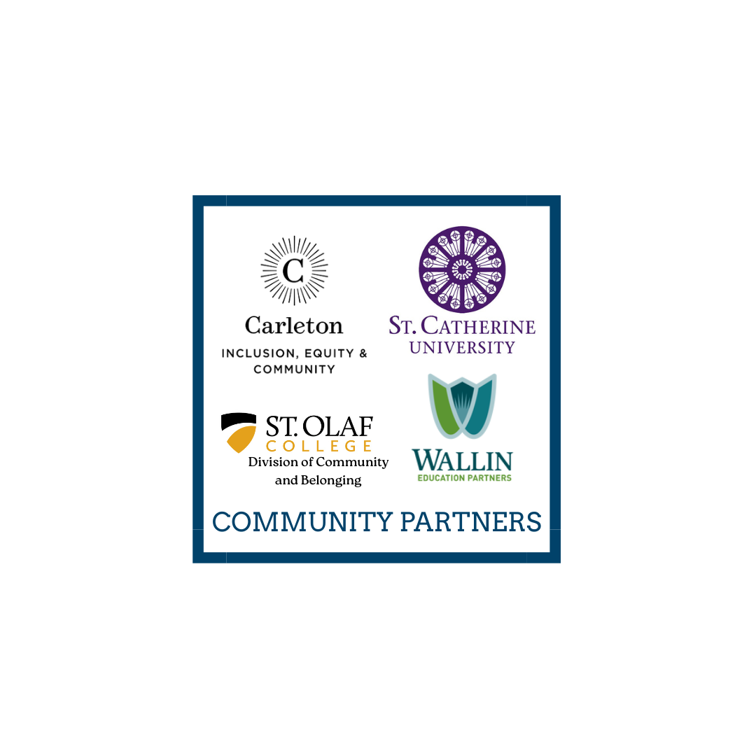 Immense gratitude to our Macalester campus cosponsors Art & Art History; Educational Studies; English & Creative Writing; Environmental Studies; Geology; Jan Serie Center for Scholarship and Teaching; Linguistics; Philosophy; Political Science; Religious Studies; Spanish & Portuguese; Office of the Dean of Students; Program Board; Student Affairs; Sustainability Office; Women’s, Gender, and Sexuality Studies; and to our community cosponsors Carleton College Division of Inclusion, Equity, and Community; St. Catherine University Division of Student Affairs, Equity, and Belonging; St. Olaf College Division of Community and Belonging; and Wallin Education Partners.