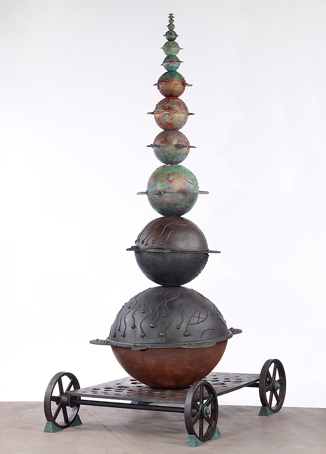 Wayne Potratz ’64, a 2014 Macalester Distinguished Citizen award recipient, has spent his career making images and telling stories with cast metal. His work draws upon a diverse set of inspirations, including canoeing and fishing, Native American culture, Asian culture and the history of spiritual practice. His research into various indigenous traditions of metal casting deeply informs the sculpture. Images of sawhorses, tools, canoes, paddles, stones and, of course, turtles frequently appear in his body of work.