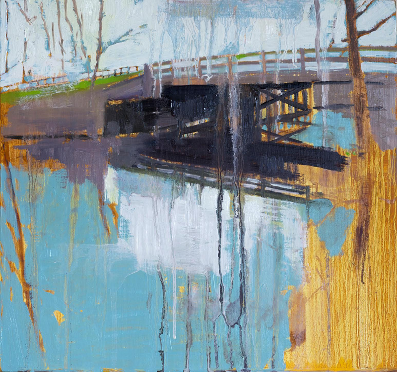 Having grown up in Canada, amidst the natural landscape and a rich tradition of Canadian landscape painting, Chris Willcox’s artwork is deeply imbued with romantic ideas of landscape as a sublime and endless open space. The focus of Willcox’s landscapes are those vistas which are steeped in historical tragedy or depict places that have fallen into disrepair. To conceive her work, Willcox has studied the lives of early Antarctic explorers and visited the battlefields of the First World War in France and Belgium. Spending time with these landscapes – when possible, walking on the land herself – her work embodies the eeriness locked into the land of these formerly decimated grounds, now tree-laden and pastoral. Figures are scant in this work, leaving the residual trenches, bridges, and ruins, as markers of human efforts and strife.