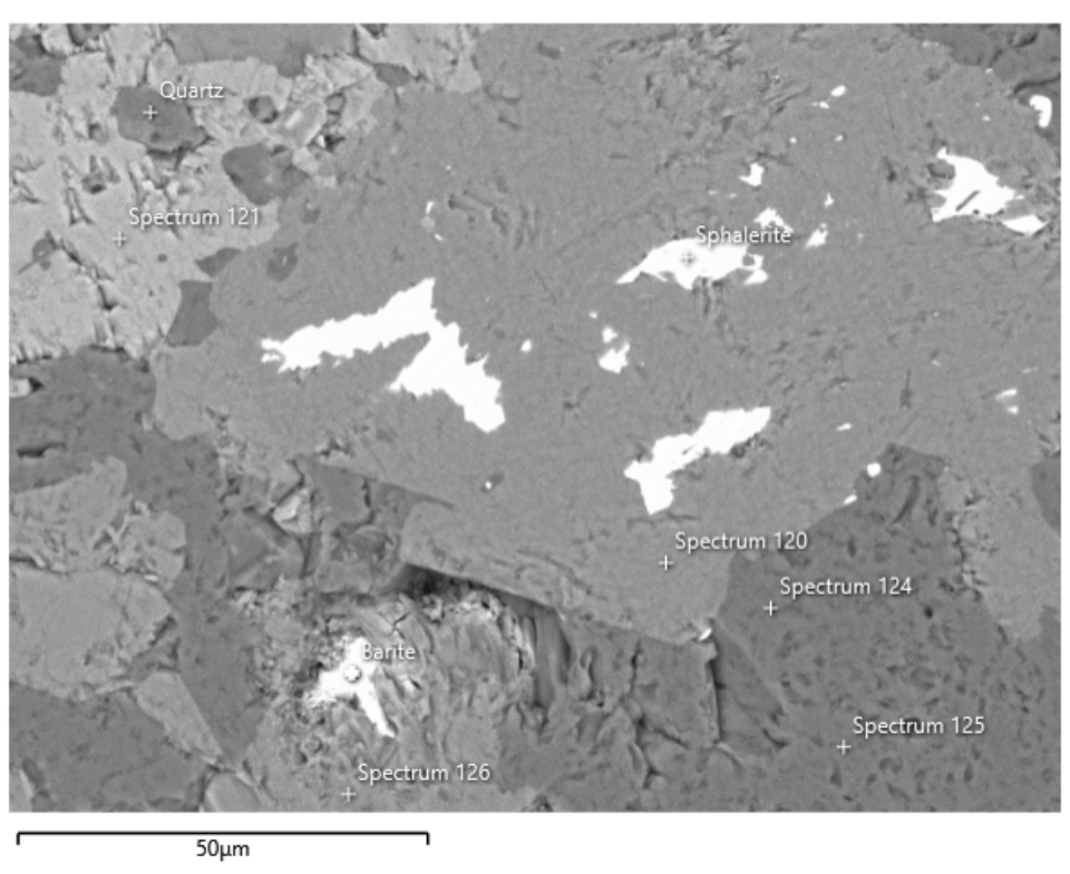 Backscattered electron (BSE) image of a thin section of a rock