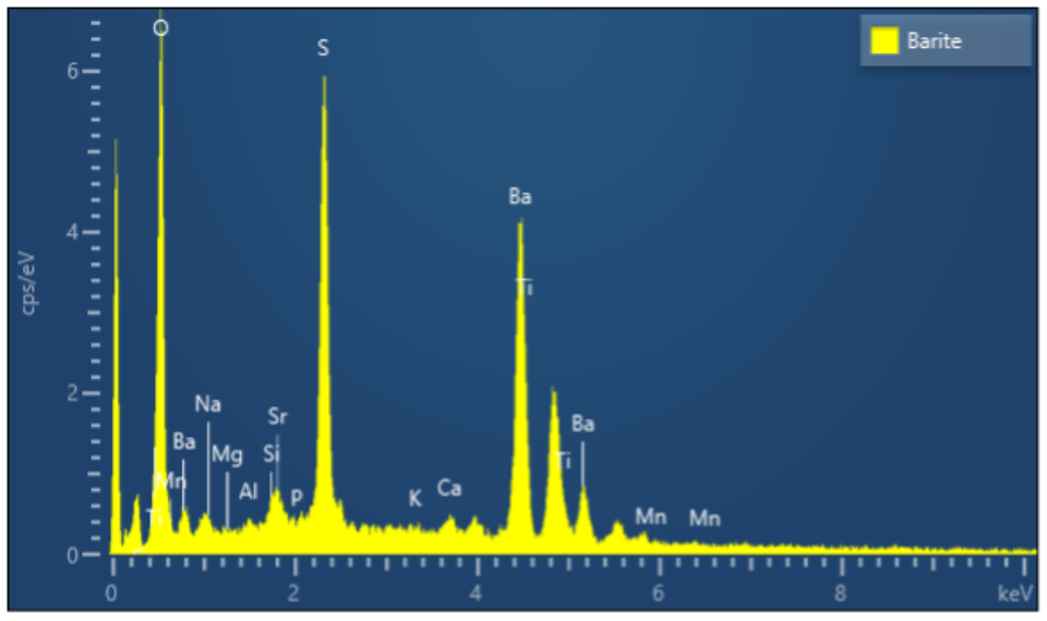 EDS X-ray spectra of the mineral barite (BaSO4)