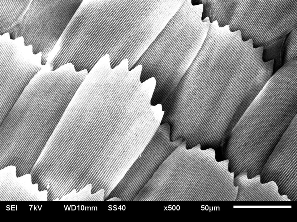 Secondary electron (SE) image of butterfly wing scales