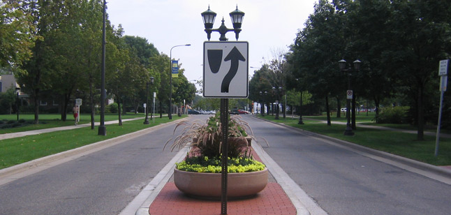 Medians and Traffic Calming — With the goals of improving pedestrian safety, calming traffic and beautifying the neighborhood, The High Winds Fund worked with neighborhood organizations, the City of Saint Paul, the Minnesota Department of Transportation, and Congresswoman Betty McCollum’s office to build The Snelling Avenue median in 2010. Macalester College partnered with Saint Paul Public Works to build the Grand Avenue median in 2004. A Macalester College alumnus wrote an interesting and fairly accurate history of the two medians.