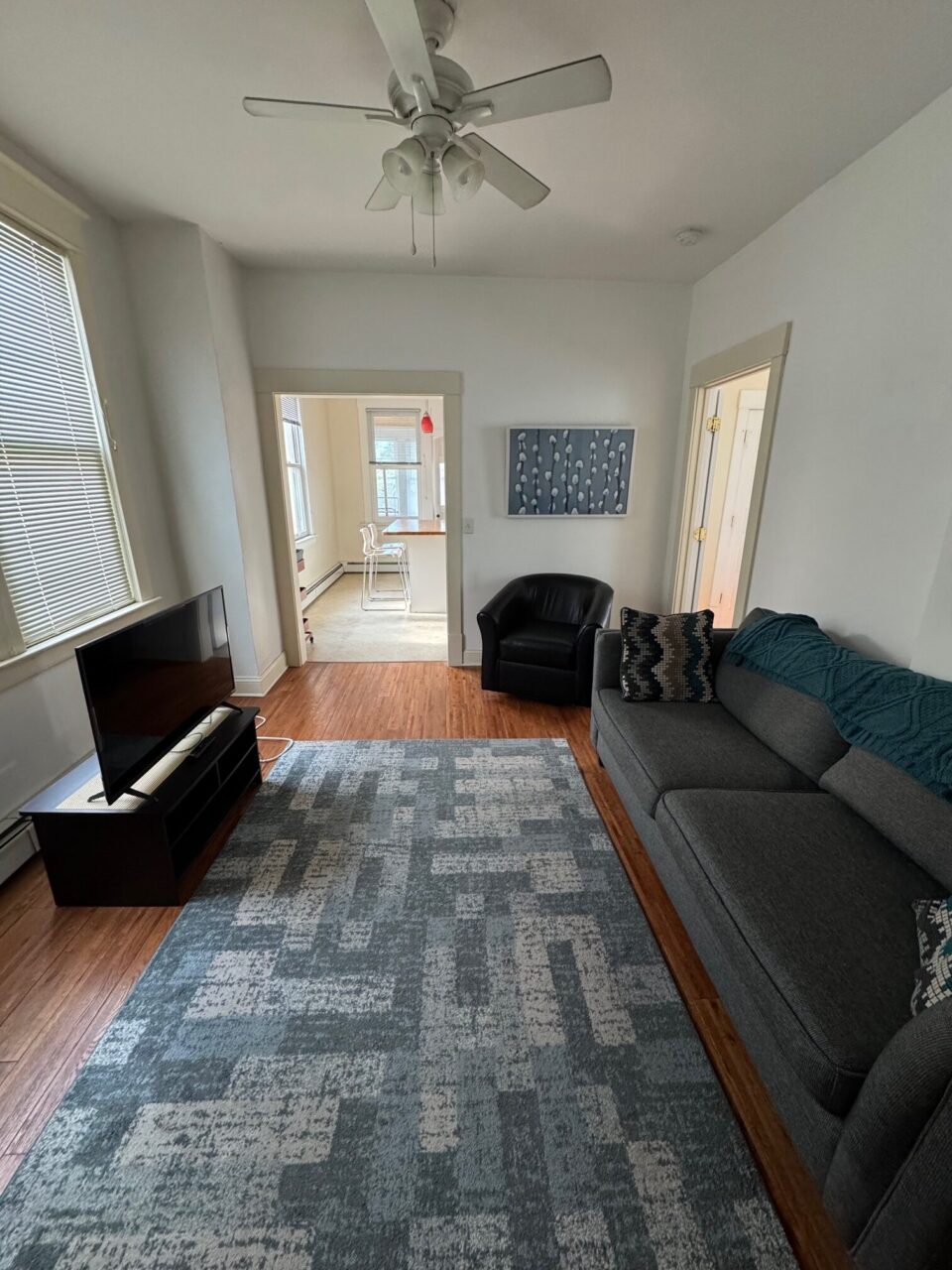 Furnished 1BR apartment located just a block from the Macalester Campus, above the St. Paul Meat Shop. Queen sized bed with large closet. Eating area in the kitchen at the center island. There is a European-styled washer/dryer combination unit in the kitchen. There is porch facing south along the back of the apartment. Bedroom windows facing west and Living room windows facing east. Street parking available on the next block or campus parking. Great access to restaurants and public transportation (on the 63 bus line and within 2 blocks of the A line rapid bus). Rent is $1,530 per month and includes heat, electricity, basic internet, water, trash and recycling.