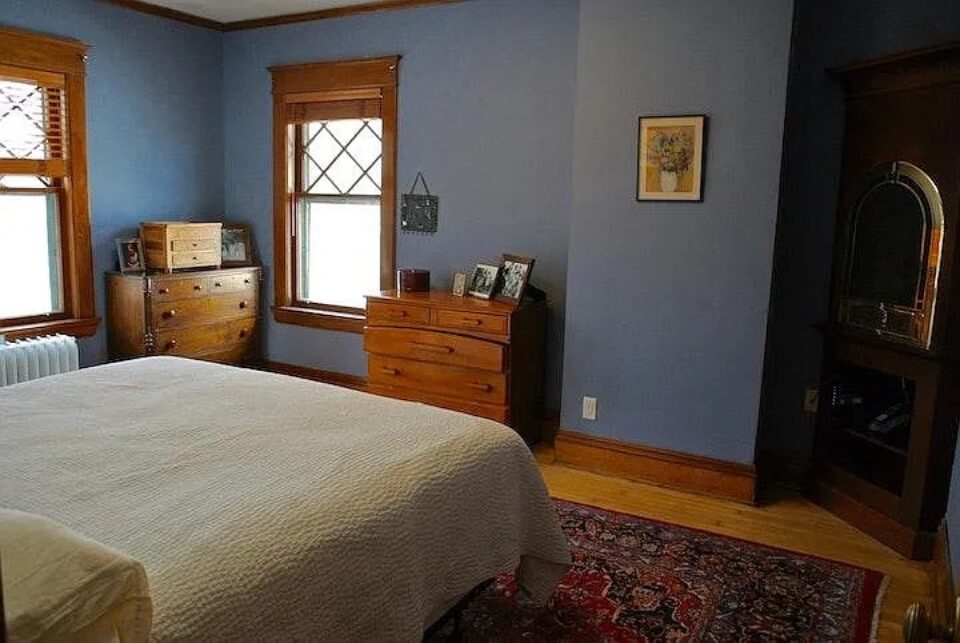 Beautiful 1917 home has four bedrooms and 2.5 bathrooms, two home offices, updated kitchen and a spacious, shaded backyard. House comes with laundry and garage, as well as ample street parking. Located in historic Crocus Hill, close to various colleges and universities. Vaulted ceiling and skylights make the third floor primary bedroom feel like a secret hideaway. The en suite bathroom has a clawfoot tub and shower. The second floor features three more bedrooms–or two bedrooms and a TV room–plus another full bathroom and a home office with lots of natural light and front and back views. Living room with cozy gas fireplace and historic marble mantel opens into a welcoming dining room with original wood built in and a view onto the backyard. The eat-in kitchen has banquette seating/breakfast nook, dishwasher and oven with induction stove. A second office–beautifully lit, thanks to French doors on three sides–opens off the living room. Original hardwood floors, in good condition, throughout the house, including the kitchen. Mini-split air conditioners on all three floors double as heaters in the shoulder season; a full radiator system provides heat in colder weather. Washer and dryer in the full basement, along with additional bathroom. Garage at the back of the yard. The fenced back yard has a lovely secluded patio area for meals or hanging out and is shaded by an enormous elm tree. $4,500 per month. Available for rent January 2026 -August 2026.