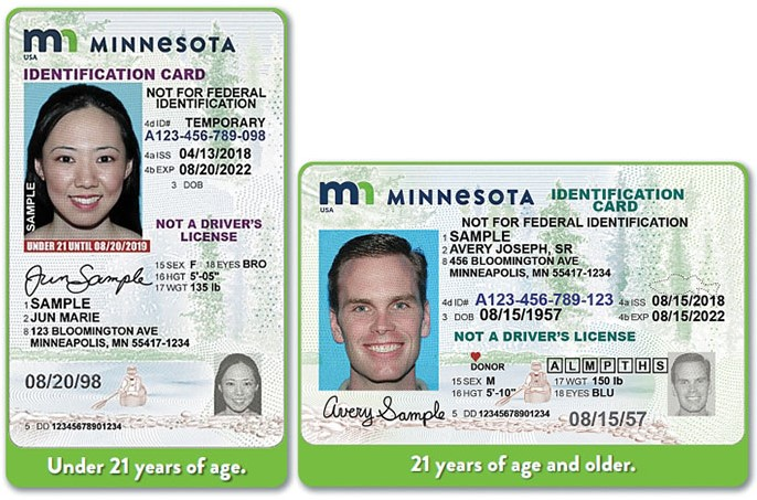 To apply for a MN ID, you need to provide the DVS (Driver and Vehicle Services) two identification documents* (two primary documents or one primary document and one secondary document) and pay a license fee (Under “Identification Cards”).