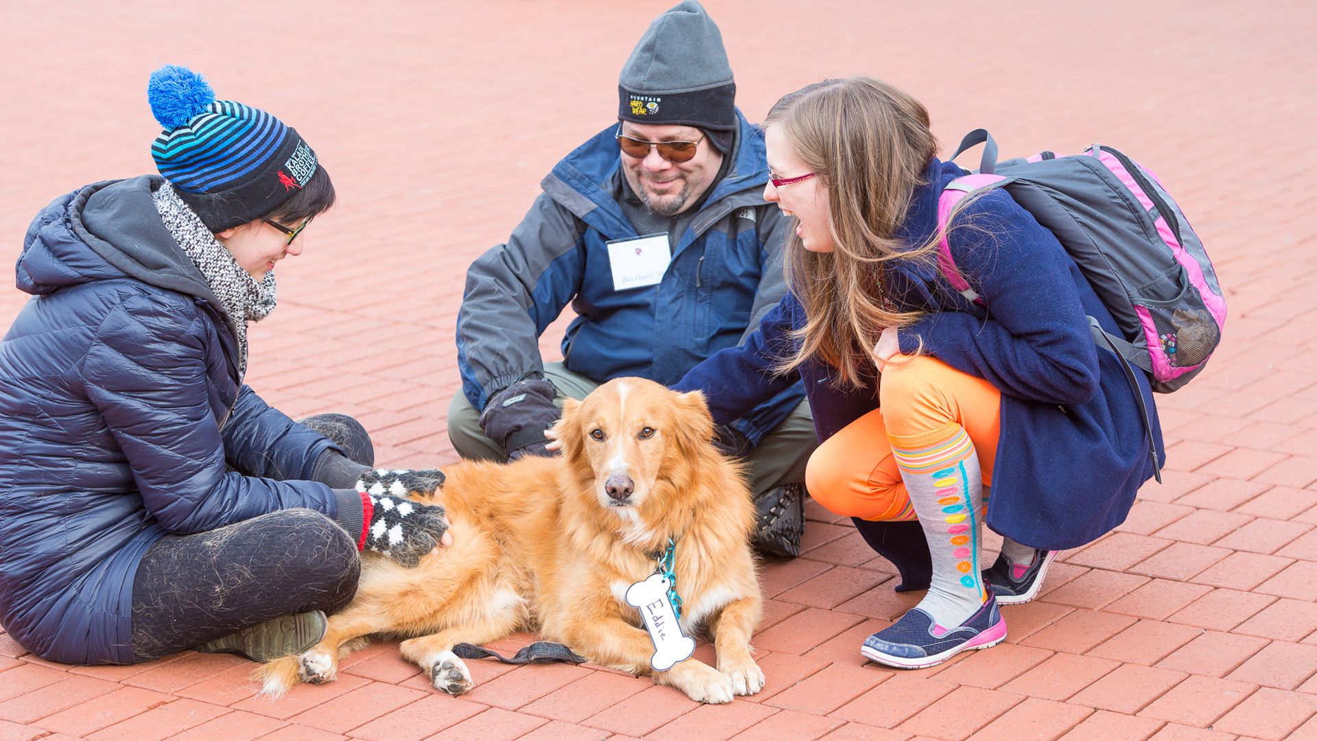 Friendly canines owned by Macalester staff, faculty, and alumni came to campus on the Saturday between classes and final exams to help stressed-out students.