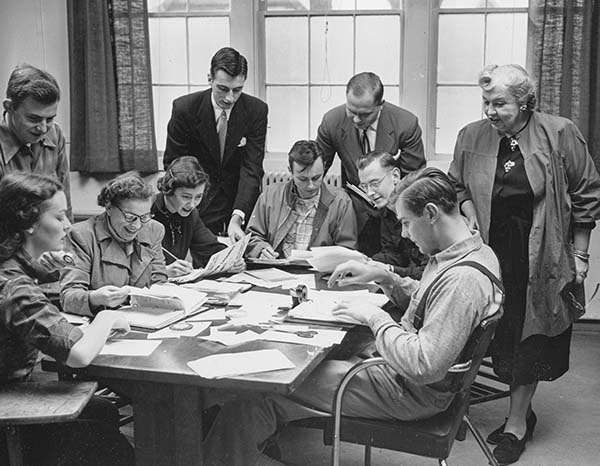 Reconsider informal party invitations (and beware of mysterious brain watchers). “As a die-hard agitator against seven-digit telephone numbers and the frightening flood of test scores fed into IBM machines by multitudes of Brain Watchers, to haunt the testee to his dying day, We say down with dittoed ‘invitations’! If a party is worth giving, let’s make it so from start to finish. The dittoed ‘invitation’ can’t be an acceptable behavior form—can it?”