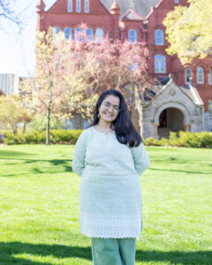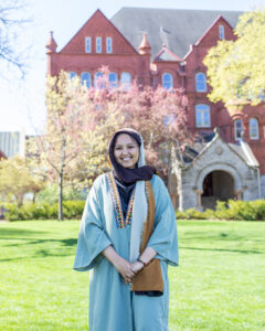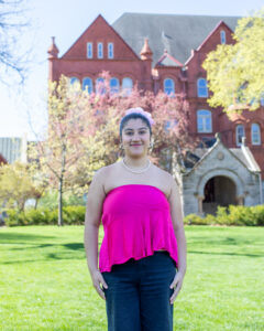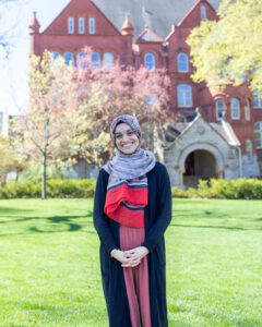 Hufsa Ahmed’s journey at Macalester embodies leadership, service, and academic excellence that extends beyond Macalester; as one of her nominators shared, “it is rare to find an undergraduate student who is so broadly successful in campus and community leadership.” At Macalester, Ahmed served for two years as co-chair of Pi Sigma Alpha, the political science honor society, served as a Chuck Green Fellow, and has been a strong leader within the Muslim Student Association. A common thread throughout her campus involvement has been her dedication to servant leadership and a desire to bring in others and support them. Additionally, Ahmed has been a leader within Sunrise Saint Paul, where she organized campaigns and teach-ins. She has also tutored first-generation immigrants through Ignite Afterschool and taught Adult English learners through Americorps. Her dedication to amplifying marginalized voices and fostering dialogue reflects her deep understanding of global interconnectedness and her unwavering commitment to social change.