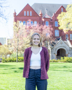 Whether it’s through her community involvement, advocacy efforts, or academic endeavors, Emma Kopplin’s leadership has shined at Macalester. Through her roles as a Resident Assistant, a course preceptor, and as Vice President of the student government, Kopplin has shown her commitment to students through exceptional mentorship and advocacy. Her dedication to creating positive change is evidenced by her involvement in initiatives like advocating for Narcan access on campus, increasing support and resources for first-generation and low-income students, and working with other students to support housing options for international students over winter break. In addition, Kopplin has produced several academic projects and papers in departments across campus, ranging in content from the destruction of the historic Rondo neighborhood of Saint Paul to funding of rural schools in South Dakota since the 1940s to personal profiles of American exiles and ex-patriots in France. Kopplin’s active engagement in curricular and co-curricular opportunities showcase her holistic approach to personal and intellectual growth.