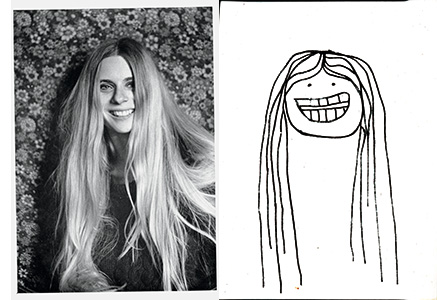 A 1969 picture of Sandy Zimmerman '70 next to a drawing of herself