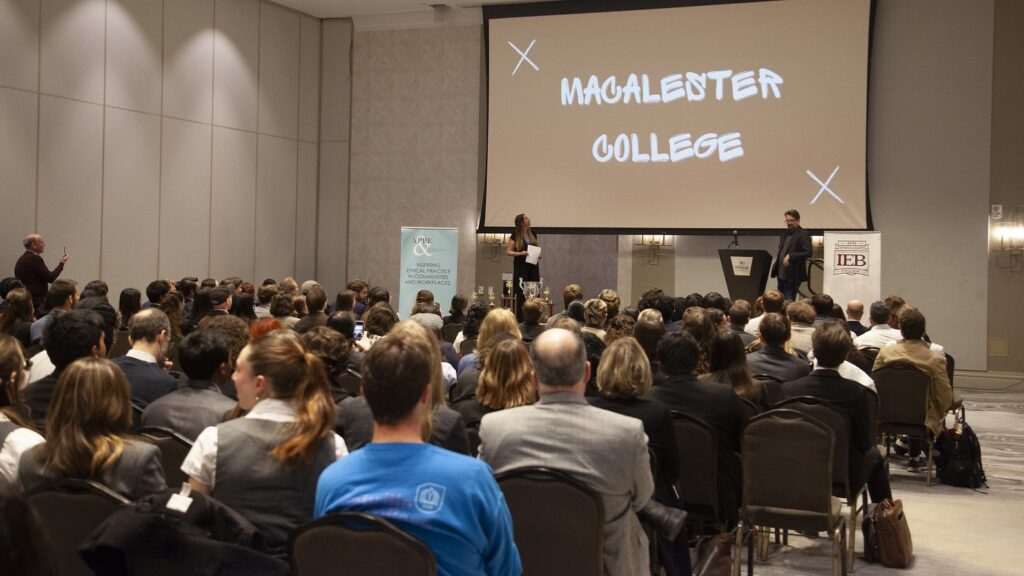Macalester’s Ethics Bowl team defeated Stanford University to win the 2025 National Ethics Bowl Championship in the APPE Intercollegiate Ethics Bowl (APPE IEB) on February 23 in Norfolk, Virginia.
