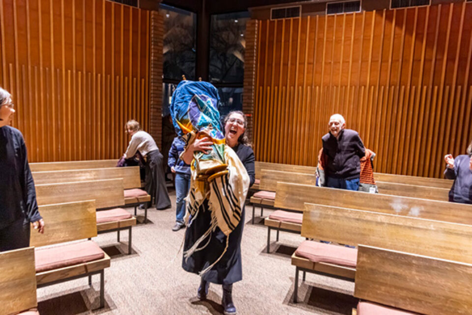 “I just love dancing with Torah,” said Macalester Rabbi Emma Kippley-Ogman, who has served as the college’s Jewish and interfaith chaplain for nearly a decade. “In that circle, with people of all ages, it’s not about how fast you can go, it’s not about how fancy your footsteps are, it’s about actually joining your heart with the person next to you to music, moving in space.”