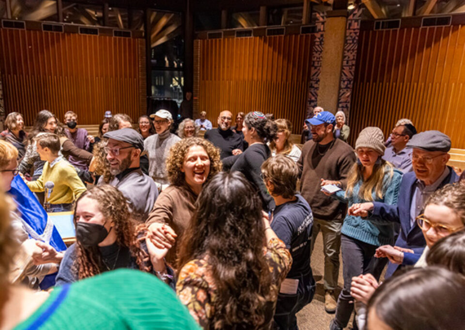 That distinct spirit of togetherness could be felt throughout the Hachnashat Sefer Torah—a scroll welcoming celebration—on February 22, 2026. And it was felt across the generations as Macalester alums and friends of all ages returned to campus to dance, chant, and celebrate alongside current students, staff, and faculty.