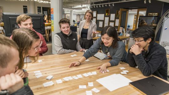 Home News Academics Page 9 Category: Academics Animal Behavior Why do certain wolves ‘fish’ but others never learn the technique? This course ask this among other questions to understand how to preserve animal biodiversity. The Rise and Fall of Tsarist Russia Curious about courses at Macalester? All it takes is 60 seconds to learn more about what you'll ... learn. Voices from the Opioid Epidemic In her new book, history professor Amy Sullivan examines the opioid epidemic’s past, present, and future. Citizen Scholars Chuck Green fellows put their ideas into action at community-based organizations across the Twin Cities. Research Review: Dinosaur eggshells Two students look at fragments of eggshells to understand life some 75 million years ago. Research Review: Dear River, Three students ask the community, "What are your hopes for the Mississippi River?" Research Review: Arachnids aren’t always spiders Four students examine the genome of one of nature's smallest arachnids. Interactive Education Macalester’s digital liberal arts initiatives are changing how faculty, staff, and students collaborate, share knowledge, and solve problems. The State of Clay In the course Wild Clay, students worked on group installation and performance projects as well as creating their own individual performative sculptures Finding the Rhythm By developing their listening skills, students learn to understand and appreciate classical music. Students create first-ever online guide for Twin Cities’ Russian-speaking community Students in Prof. Julia Chadaga's Advanced Russian class produced the map to connect the Twin Cities Russian-speaking community. Being Latinx in the U.S. This introductory course teaches students about the complex issues of being Latinx in America. Studying Health in a Pandemic A medical anthropology course grapples with propositions such as “Racism is bad for our health” and “Stigma is deadlier than Ebola.” Life on Mars and Beyond A student seeks to find life elsewhere Setting the Stage Students learn the art of scenic design in this advanced theater course. Commencement 2021 – 9:30 a.m. Grad Walk Three students receive Global Citizenship Award Presented annually to graduating seniors who demonstrate a commitment to the ideals and practice of high academic performance, internationalism, multiculturalism, and community engagement. Digging In Students get their hands dirty to examine what makes dirt soil. Capstone Conclusions We asked a few seniors how they approached their capstone projects—and what they learned. From Craigslist to Census: Telling Stories with Data A hands-on course teaches students that data alone can tell a powerful story. Comparing Japanese-to-English Translations of Sailor Moon Over Time Linguistics Professor Morgan Sleeper studies the popular manga Sailor Moon. Prev 1 … 6 7 8 9 10 Next