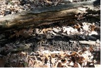 This specimen was collected in a woodland area (Figure 6.) from the underside of an over-turned log at the Katherine Ordway Natural History Study Area in Inver Grove Heights, Minnesota. The specimen was in dark, moist soil amongst decaying leaves where the decayed log had been before being dislodged (Fig. 7. &8.).