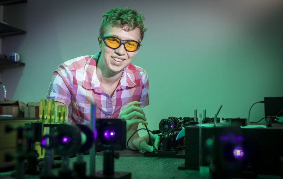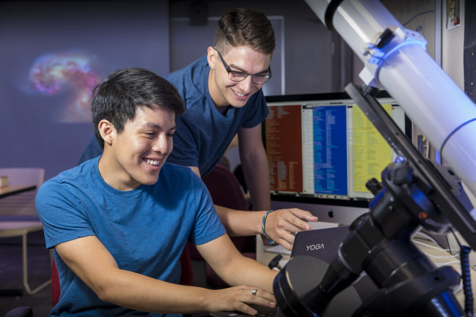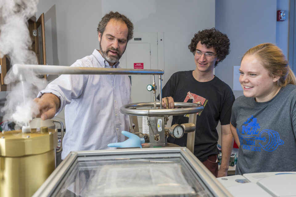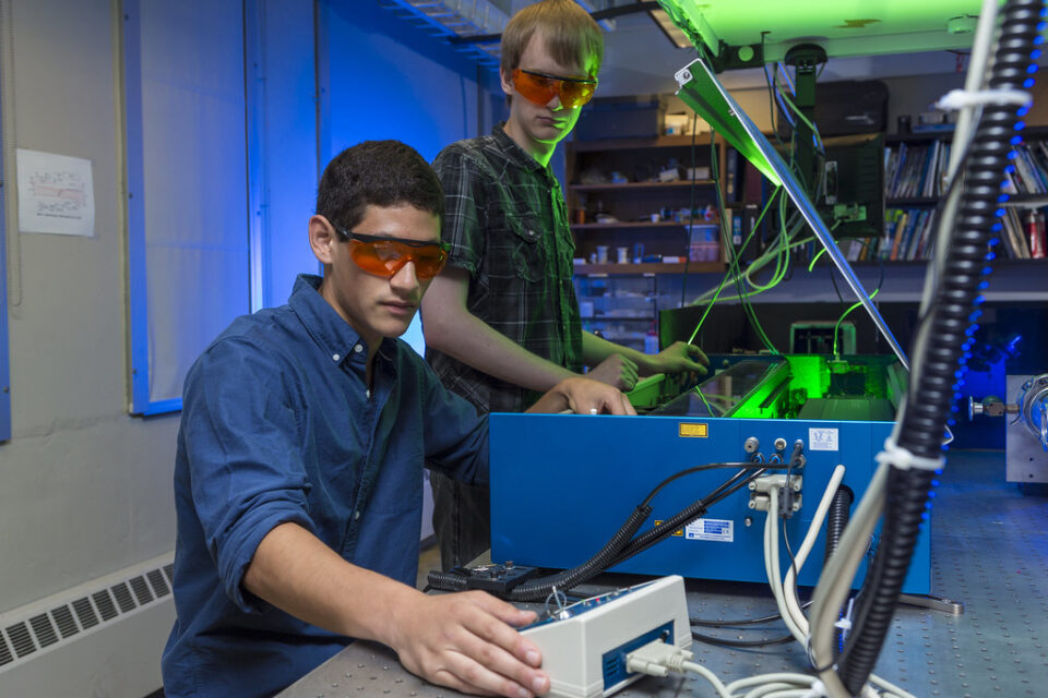 Our faculty members conduct active research programs in exciting fields at the frontier of physics and astronomy, such as experimental condensed matter physics, including semiconductors and mono-layer carbon (Graphene), theoretical particle physics, including the physics of electroweak symmetry breaking (Higgs boson) and dark matter, and observational astronomy, including multi-wavelength observations of dwarf elliptical galaxies and their implications for galaxy formation. The department strongly emphasizes collaborative student-faculty research and has as its trademark that majors are required to participate in original research projects in order to graduate. Our students therefore gain valuable practical experience in a range of aspects of the scientific research enterprise, including experimental, observational, theoretical, and computational techniques, and written and oral communication skills, in addition to knowledge obtained through our rigorous curriculum of coursework and labs.
