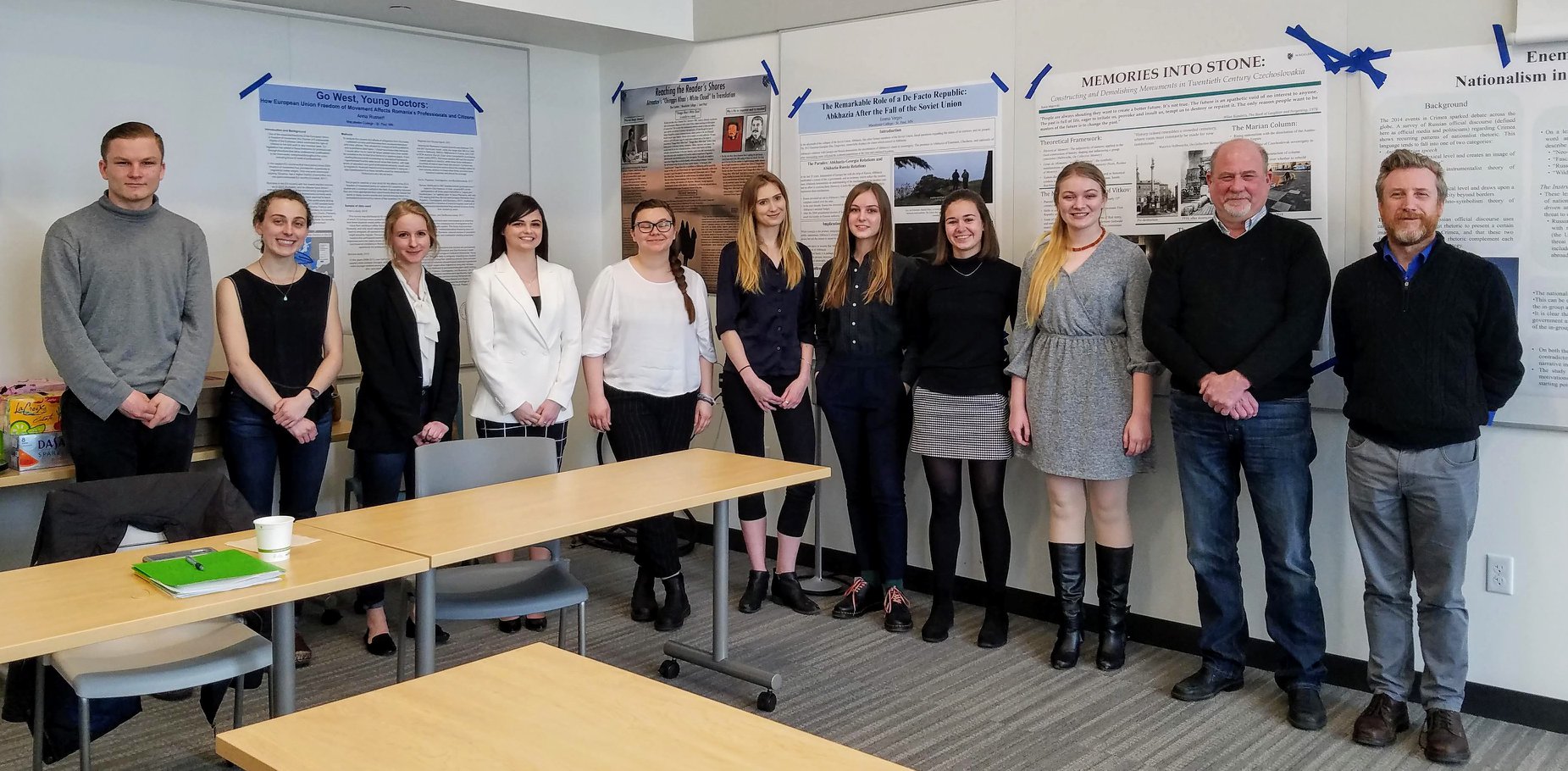 On Saturday, April 13th, Macalester students (plus one Grinnell student) gathered to present posters they made for projects relating to Russia, Eastern Europe, and Central Asia. The projects spanned a wide breadth of topics and disciplines, ranging from Romanian doctor emigration to sheep in Kyrgyzstan, from climate change in Russia to Bosnian Croat nationalism.