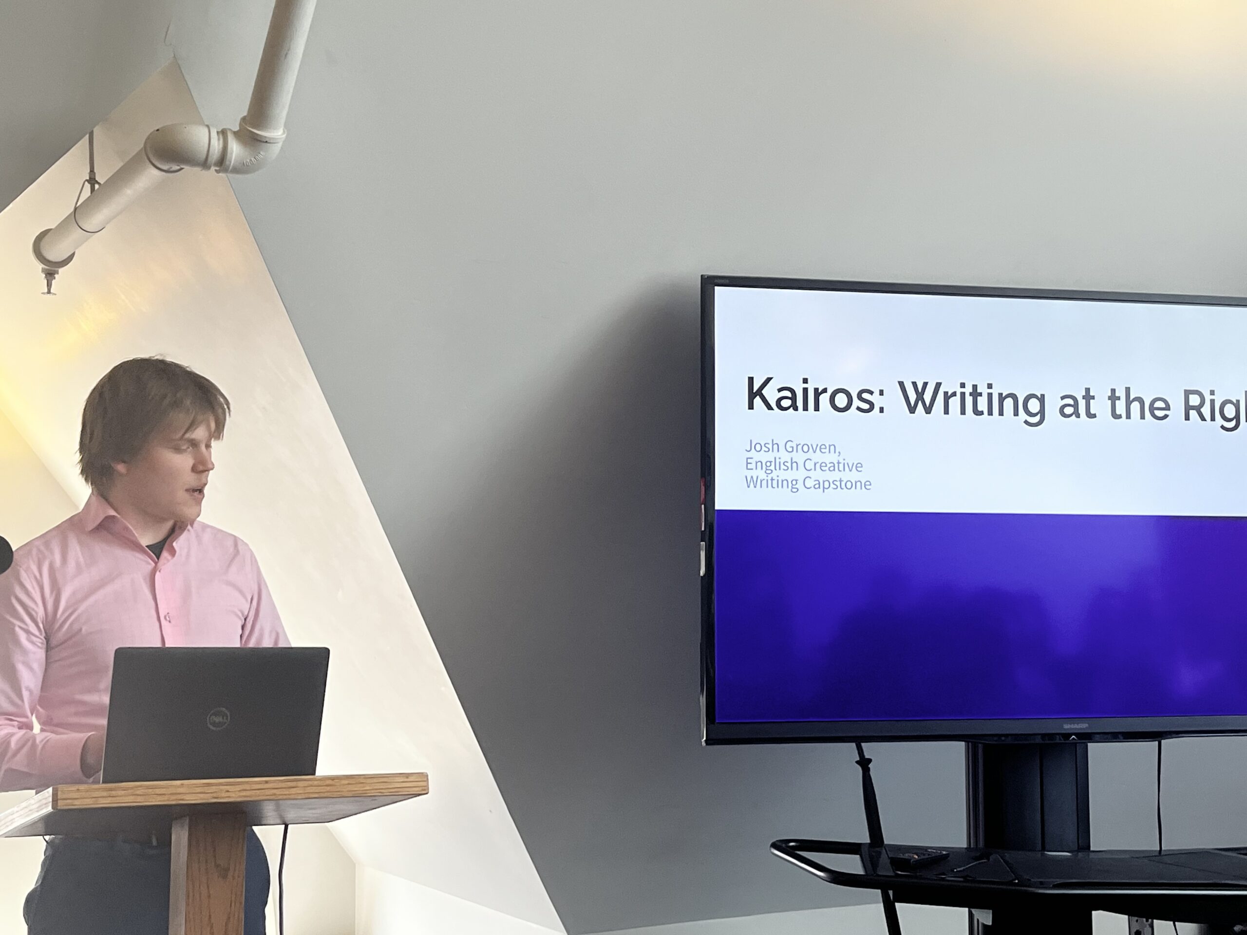 This semester, ten English majors undertook the capstone project across both the disciplines of Literature and Creative Writing. There was a wide range of forms and topics explored in the various projects. This included poetry, fantasy, photography, and much more! On April 25th and 26th, the ten students each shared a presentation in which they described the work they completed throughout the semester. The presentations were attended by many loving friends and family as well as the English professors who did so much to help support the students through their work.