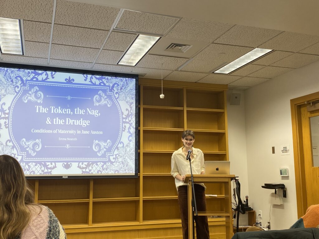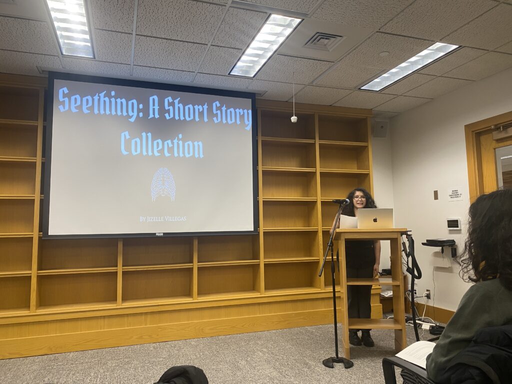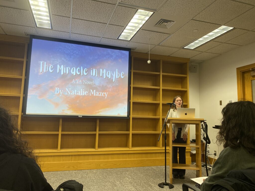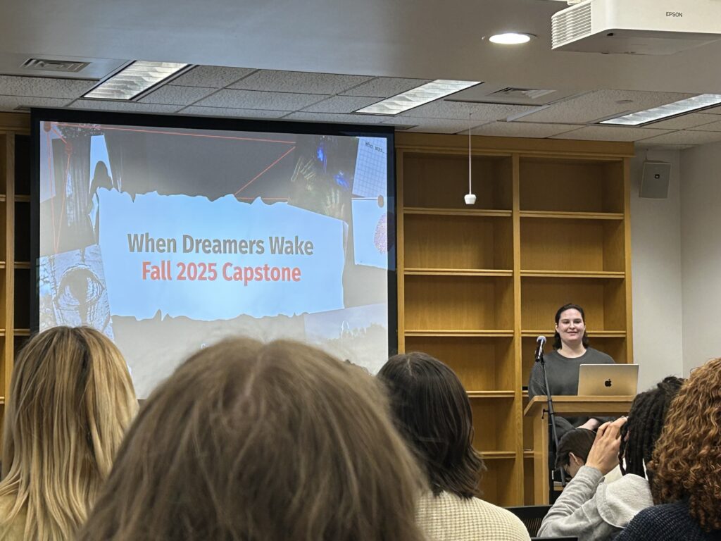 Another semester in the English & Creative Writing Department means another round of capstones showing off the wonderful work of our majors! This semester’s capstone class featured a creative writing section and a literature section presented on Tuesday, December 2 and Wednesday, December 3, with presenters from each class interspersed with one another. Projects ranged from novels to poetry collections to critical analyses. Read on to find out about what our spectacular scholars have been up to this semester.