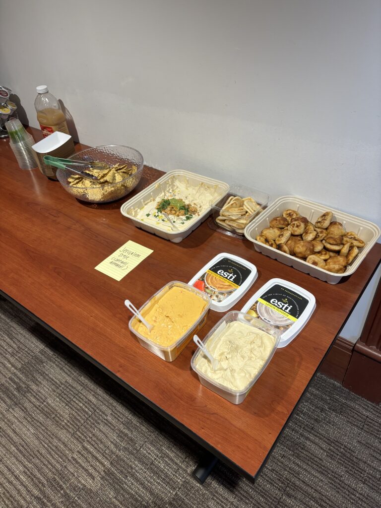 For the October 23rd weekly Coffee House, the English Department held an “English-y” org fair as an opportunity for students to discover all of the English-related writing/literary student organizations on campus and learn about ways to get involved in each. Orgs that were represented included Chanter, The Mac Weekly, MacSlams, A Novel Idea, Hedgmonocle, and the English Honor Society. Each organization gave a short introduction about what they do, and then students had the opportunity to connect with them individually afterwards. The department’s student workers provided snacks and refreshments in the form of the classic coffee bar, honeycrisp apple cider, and some delicious pita and hummus from Baba’s Hummus House.