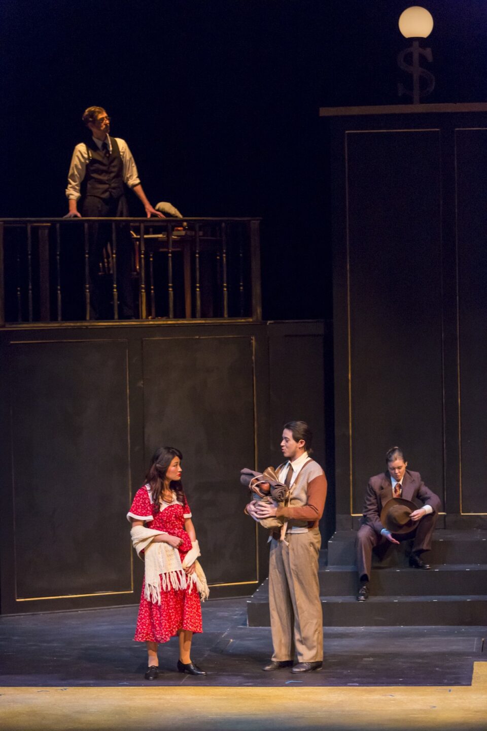 “The Cradle Will Rock”, a collaboration between the Theatre and Dance Department and the Music Department, is set in 1937 Steeltown, reminiscent of old time Chicago. This show brilliantly emphasizes the divide between laborers and proprietors through the contrast of Mr. and Mrs. Mister, the excessively lavish and corrupt first couple of Steeltown, whose hands are in every institution, against the grungy lives of the unionizers led by Larry Foreman, the confident and incendiary union organizer. This musical drama illuminates the social, political, and economic chaos in the United States after the Great Depression, when unemployment, government corruption, and greed ran rampant.