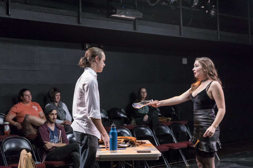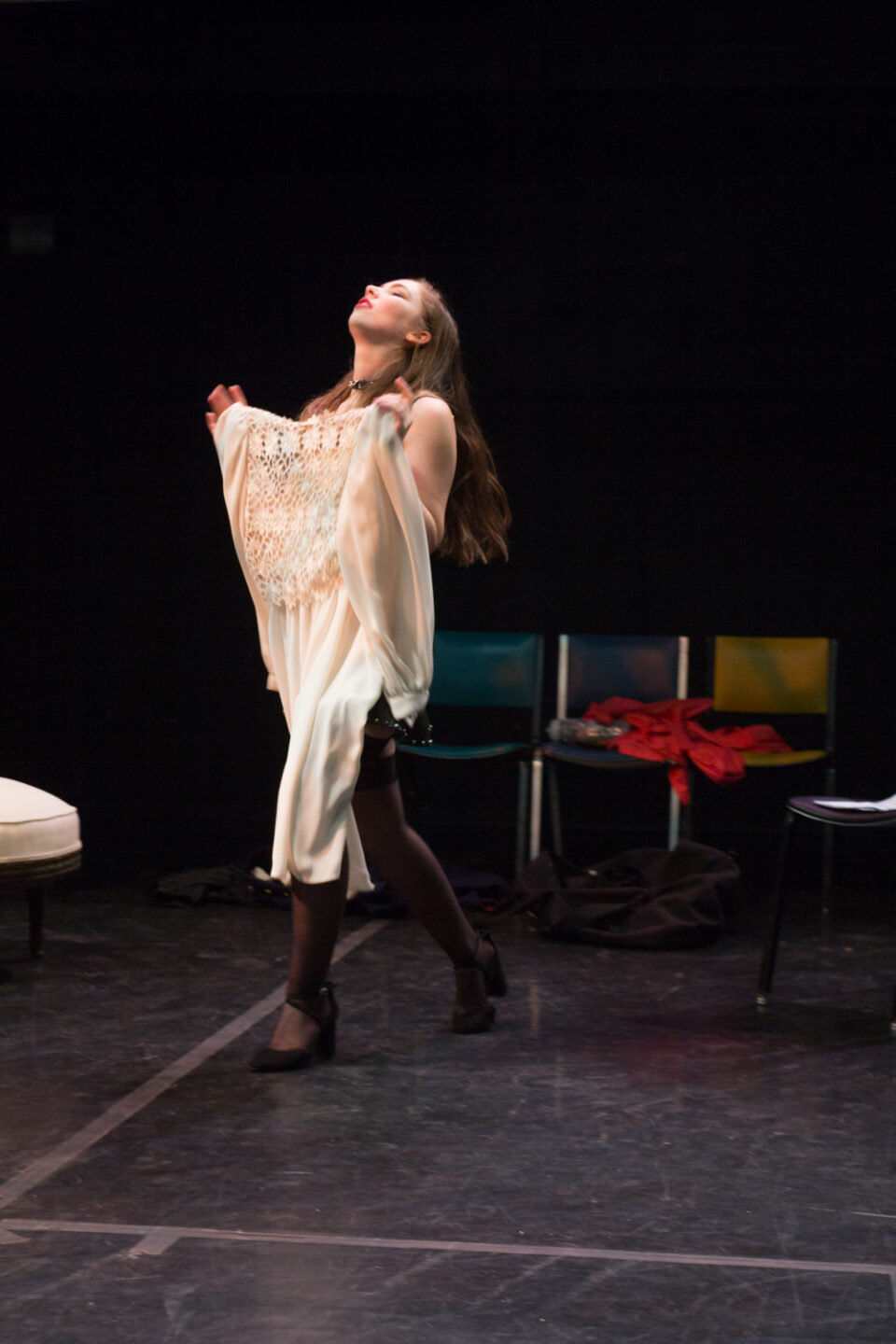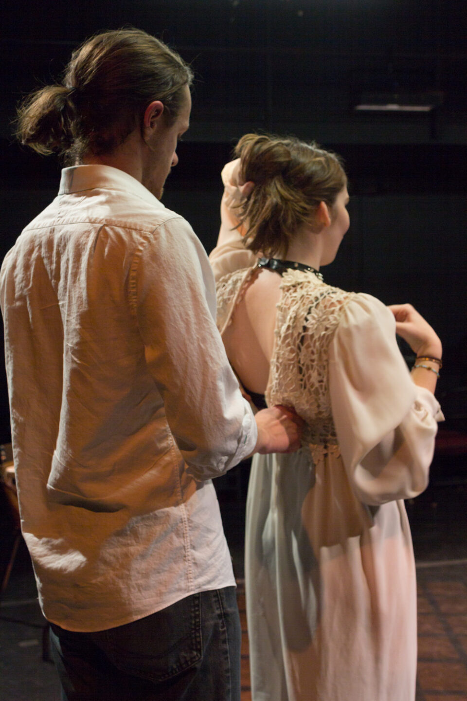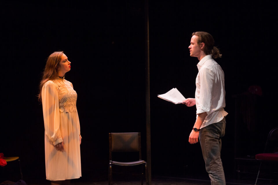 If there were no consequences, how would you act? In a culture increasingly determined to socialize women to take up less space, to control their tempers, to remain ‘poised’ under threat of discrimination or being labeled as ‘crazy’ or ‘hysterical’, Venus in Fur, by David Ives, offers a direct contradiction to this reality. This is a play that gives space for a woman to be angry, to blatantly call out the sexism she experiences, and to come out against the systems that demonize her. This process has given us the same opportunity; it is work that taps into the stories and anger that we are feeling, giving all of us the ability to depict and delve into more honest portrayals of complicated relationships.